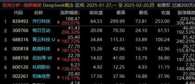 该板块自1月27日启动以来,已经11个交易日,板块累计成交了3万亿,前排个股涨幅巨大,涨幅最大的是并行科技292%,下面是涨幅前7的个股。